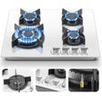 Plaque gaz,Plaque de Cuisson Gaz,4 foyers,avec Sécurité Thermocouple,Gaz Naturel/Propane,Verre trempé Blanc,8,0 kW,220-240 V,L60