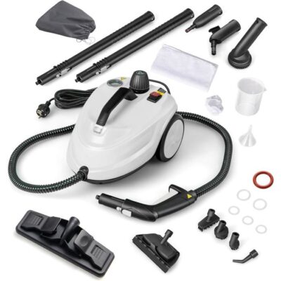 GOPLUS Nettoyeur Vapeur 2000W avec Réservoir 1,8L,13 Accessoires,Pression 5 Bar,Balai Vapeur pour Tapis,Fenêtre,Verre,Rideau,Blanc