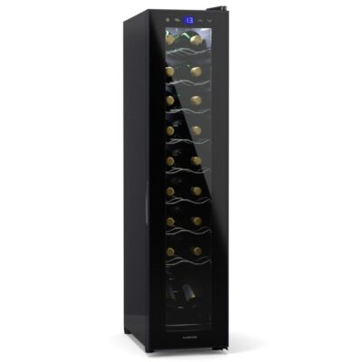 Klarstein Cave à Vin, Cave de Conservation de 50L, Porte en Verre, 1 Zone, Frigo Vin, Armoire a Vin, 18 Bouteilles, Noir