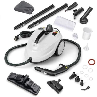 Nettoyeur Vapeur Polyvalent 2000W COSTWAY pour Punaises de Lit-5 BAR-15 Accessoires et Manomètres-Réservoir 1,8L-160°C-4 Roue-Blanc
