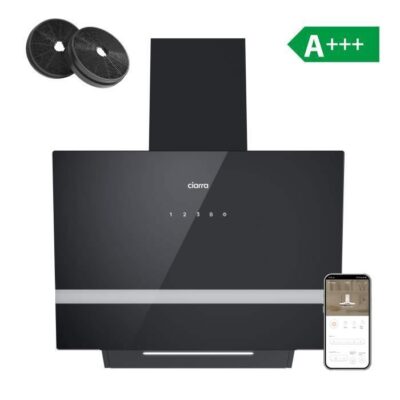 CIARRA Hotte Aspirante Booster 650m3/h A+++ Hotte Wi-Fi APP Contrôle 4 Vitesses Recyclage Noir