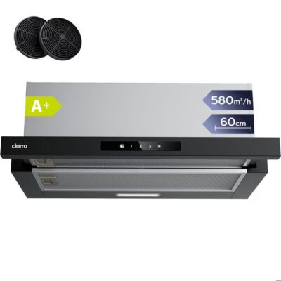 CIARRA Hotte Tioir 60cm A+ 580m3/h Recyclage ou Evacuation inclus 2pcs Filtre Actif Hotte Noir CD6909AB