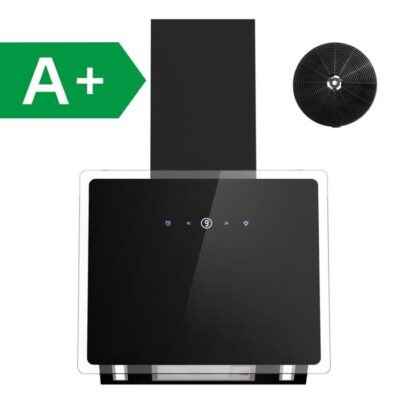 FIREGAS Hotte Aspirante Murale 60cm,Moteur Sans Balais, 550 m³/h, 9 Vitesses, Avec Filtre, Noir,Bord Transparent