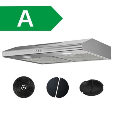 FIREGAS Montage sous armoire hotte d'aspiration murale 60cm pour évacuation et recyclage, à économie d'énergie BLDC,Classe