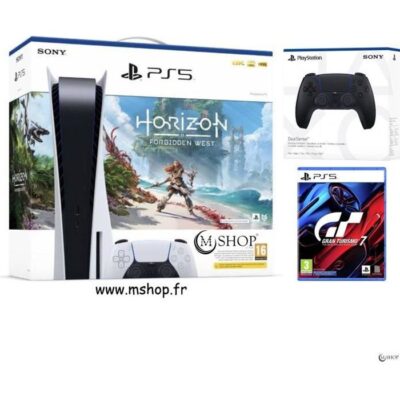 Console PlayStation 5 - Sony - Bundle Horizon Forbidden West + Gran Turismo 7 - 825 Go - DualSense PS5 Noir
