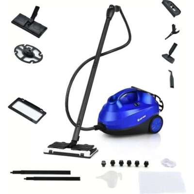 Nettoyeur Vapeur Polyvalent 2000W COSTWAY Punaises de Lit-Réservoir 1,5L,19 Accessoires 4,0 Bar-Voyant LED-108℃-Acariens Bleu