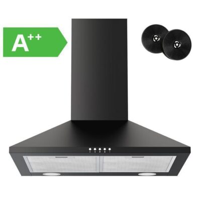FIREGAS Hottes Aspirantes 60cm 368m³/h-Evacuation ou Recyclag-Hotte Murale-Noir-Classe énergétique A++