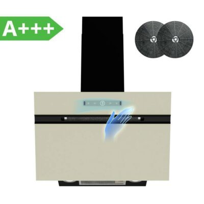 FIREGAS Hotte Aspirante inclinée 60cm-700m³/h-9 Vitesses-BLDC Moteur-Evacuation &Recyclage-Geste + toucher-Gris-Classe A+++