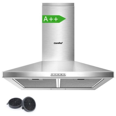 Hotte Aspirante 60cm Comfee - 400 m³/h - Classe A++ - 2 Filtres à Charbon - 3 Vitesses - Recyclage & Évacuation - LED lampe - Inox