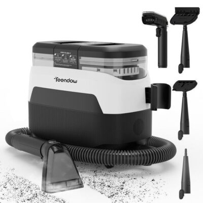 Shampouineuse Portative 500W, Nettoyeur Puissant 12Kpa Pour Tapis, Canapés, Rideaux et Tissus, Léger et Compact 3.5kg, Réservoir