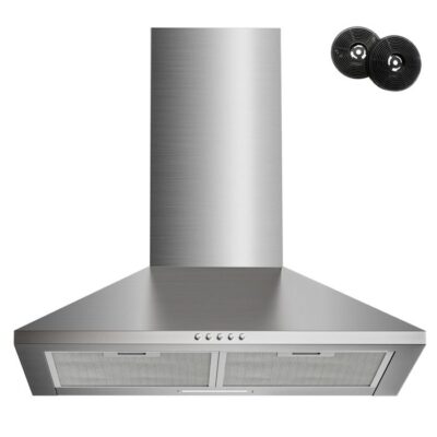 FIREGAS Hotte Aspirante Murale 60cm, 308 m³/h, Avec LED, 3 vitesses, Filtres à Charbon, Inox