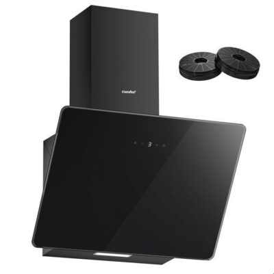 Hotte Aspirante Inclinée 60cm Comfee - 400m³/h - Commandes Sensitives - 3 Vitesses - 2 Filtres à Charbon - Verre Noir