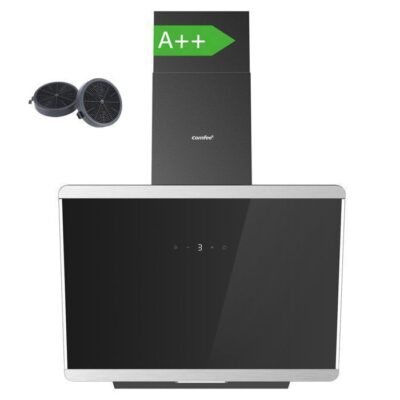 Hotte Aspirante Inclinée 60cm Comfee - 480m³/h - Classe A++ - Commandes Sensitive - 3 Vitesses - 2 Filtres à Charbon -Verre Noir