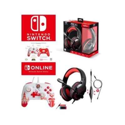 Manette et casque gamer - Nintendo - MARIO ROUGE ET BLANC - PRO GAMING HEADSET - Filaire - SWITCH EDITION