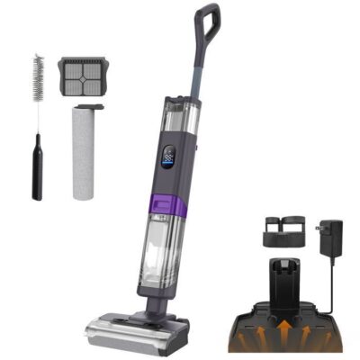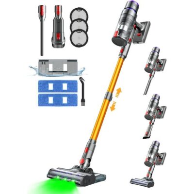 Batterie Longue Durée, Nettoyage sans Souci. Le aspirateur balai sans fil est alimenté par une batterie très efficace qui dure jusqu'à 50 minutes en un seul pas , ce qui permet de couvrir facilement toute la maison sans avoir à le recharger fréquemment. Finissez le nettoyage en une seule fois, dites adieu aux arrêts au milieu, améliorez l'efficacité et rendez le nettoyage plus facile. Aspiration Puissante, Nettoyage en Profondeur. Avec une puissance d'aspiration de 40KPA, le aspirateur laveur élimine facilement les poussières et saletés tenaces. Que ce soit sur les tapis, les planchers en bois ou les fissures étroites, le aspirateur balai garantit un nettoyage complet, laissant votre maison revitalisée et impeccable pour un nettoyage en profondeur vraiment efficace. Tête de Améliorée, Conception Anti-Emmêlement Intelligente. Le aspirateur sans fil est doté d'une tête de nouvellement agrandie offrant une plus grande surface de nettoyage. Sa structure de poils en forme de V et son peigne anti-emmêlement sont conçus pour minim r l'emmêlement des cheveux au imum. Équipée d'une lumière LED verte, la tête de rend la poussière dans les coins sombres facilement visible, assurant un nettoyage plus approfondi. Conception Multi-Fonctionnelle 6-en-1 pour Toutes les Situations de Nettoyage. Polyvalent dans sa conception, le aspirateurs balais et balais électriques passe facilement entre les modes balai et portable, avec des outils interchangeables pour les fissures et des buses combinées pour s'attaquer à diverses tâches de nettoyage. Que ce soit pour les sols, les canapés, les voitures ou les coins d'escaliers, le aspirateur peut tout faire, répondant à tous les besoins de nettoyage de votre maison avec un seul appareil. Système de Filtration Haute Efficacité pour un Air Plus Propre. Le aspirateur laveur sans fil est équipé d'un système de filtration HEPA avancé capturant efficacement les fines particules, les allergènes et autres substances nocives. Il garantit que l'air expulsé est propre et frais, offrant un environnement intérieur plus sain pour vous et votre famille, assurant à la fois des espaces plus propres et un air plus pur. Support Client 24h/24 et Conseils d'Entretien. Notre service client professionnel est disponible 24h/24. Le filtre HEPA est lavable et est livré avec deux filtres supplémentaires gratuitement. Un nettoyage régulier du filtre empêchera toute perte d'aspiration et les obstructions. Nous nous engageons à vous aider et à agir de manière responsable pour garantir votre satisfaction.
