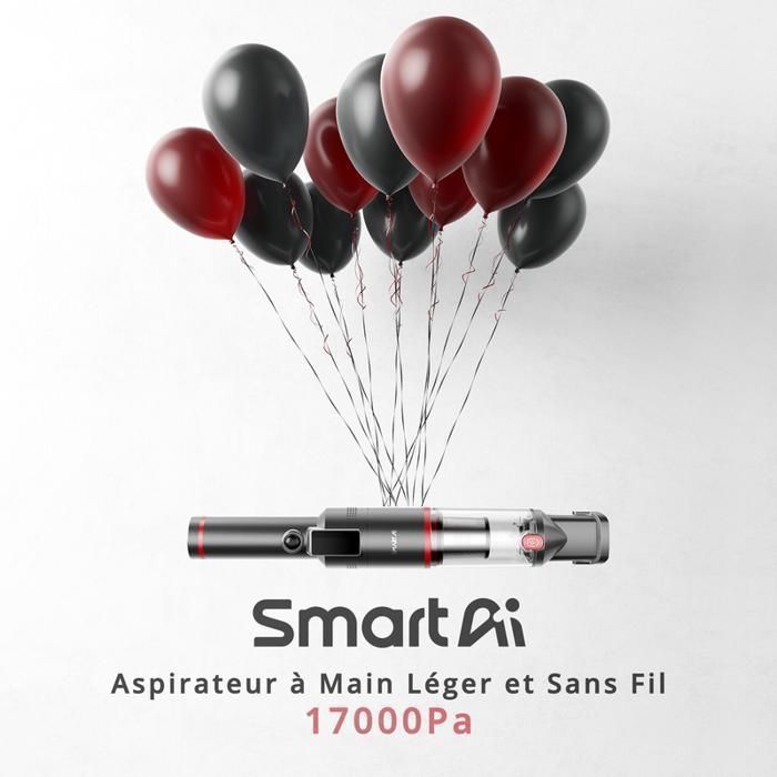 Nom du produit Aspirateur à Main Sans Fil Rechargeable – SmartAI H5 – 145W/17000Pa – jusqu 30 Mins – Affichage LED – Voiture,Maison,Poils