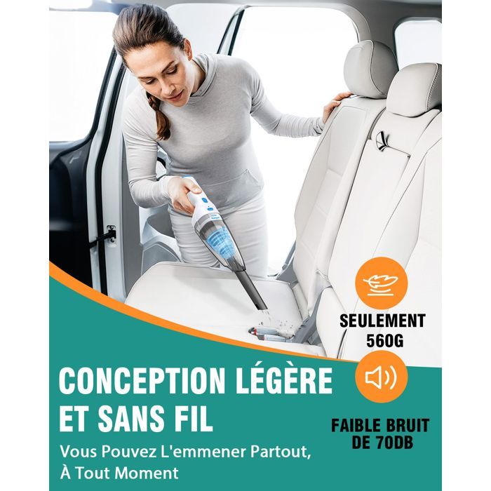 Le volume de travail de l’aspirateur portable est inférieur à 70 dB. Il ne sera pas trop bruyant lors du nettoyage.