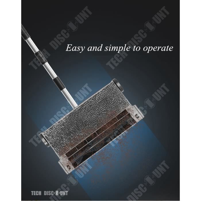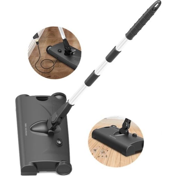 Fonction de nettoyage: balayage du sol, nettoyage du sol, aspiration Temps de charge: environ 3 heures (chargement par USB) Bruit: 55db Poids du produit: 868g Tension de travail: 3.7V / 1200mAh Autonomie: environ 90 minutes Longueur du manche: 210cm Fonction: nettoyer les déchets tels que les cendres, les coquilles de melon, les miettes de snack, la poussière, les cheveux, la sciure de bois, etc. Dimensions d