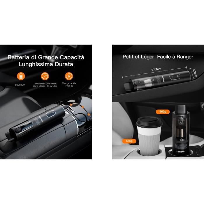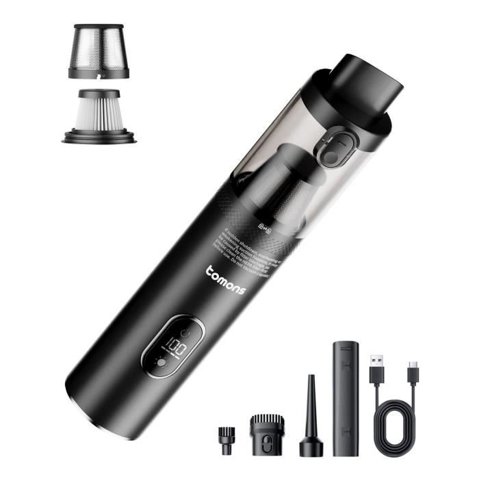 Aspirateur à main 3-en-1 tomons, Aspirateur à main sans fil de 14000PA avec filtre HEPA multi-filtration