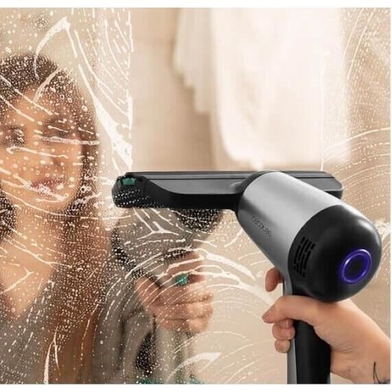 Robot lave vitres 3 en 1 : pulvérise, nettoie et aspire. Possède une bouteille de 220 mm pour tous les types de vitres ou de miroirs. Capacité du réservoir d’eau sale : 50 ml. Nettoie jusqu’à 75 m2 de surface par charge. Ne laisse pas de traces d’eau