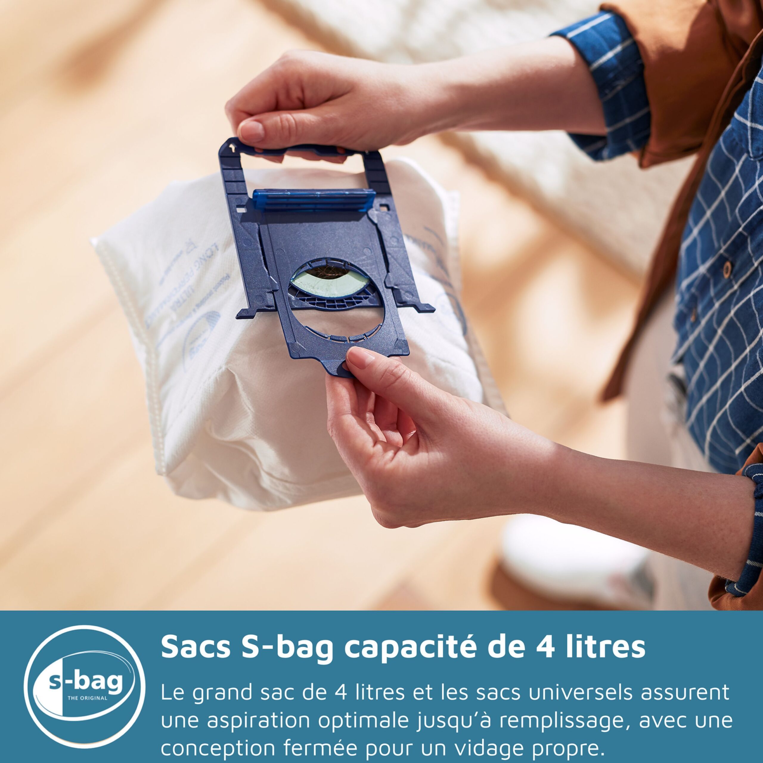 Accessoires inclus: Suceur plat, Brosse intégrée, Accessoire spécial meubles Brosse standard: TriActive+ LED Sacs à poussière inclus: 4 sacs S-bag Pare-chocs souple: Oui |