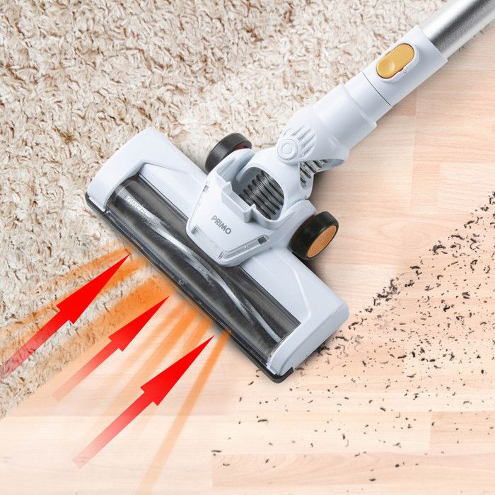 L’aspirateur-balai sans fil PRIMO PR500SV 3-en-1 vous permet d’aspirer rapidement la saleté. La tête de brosse aspire facilement la saleté du sol, tandis que le suceur plat et la brosse à poussière inclus vous permettent d’atteindre les zones difficiles d’accès. Le système cyclonique efficace associé à la puissante batterie au lithium-ion de 18,5 V vous permet de terminer votre travail en 20 minutes. Le PR500SV étant sans fil, vous bénéficiez d’une totale liberté de mouvement et la tête d’aspiration flexible vous permet de passer sous les armoires et les canapés en toute simplicité. Le PR500SV est disponible dans un coloris neutre blanc/pêche et vous pouvez également l’utiliser comme aspirateur à main.