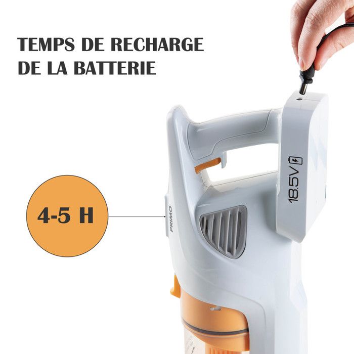 | Nom du produit | Aspirateur Balai 3-en-1 PRIMO PR500SV – Sans Fil – 18,5V – Puissant système cyclonique |