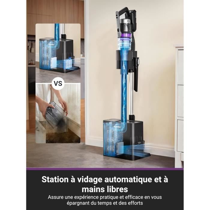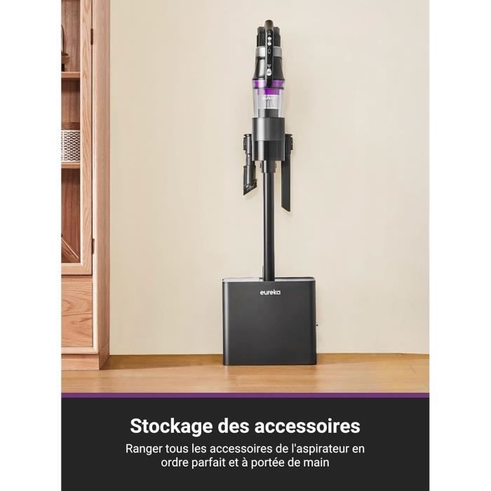 Eureka Stylus Elite Aspirateur Balai sans Fil avec Base,Aspiration 24000 Pa,Vidage Automatique du Bac à Poussière avec Sac de 3 L,Aspirateur sans Fil Brosse Anti Enchevêtrement,Autonomie 60 Min