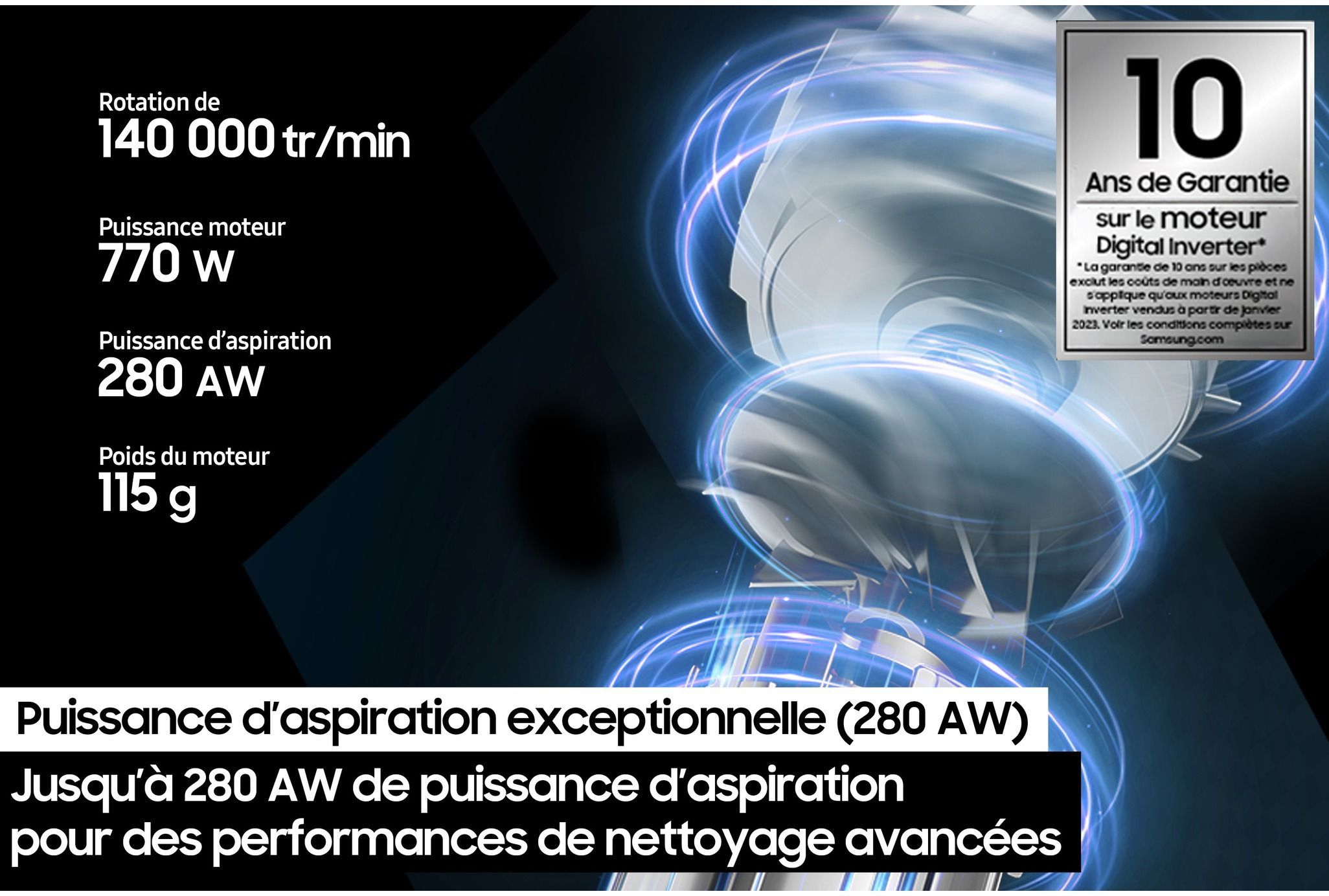 | Puissance d’aspiration maximum (air watts) | 280 AW |