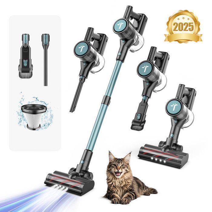 L’aspirateur balai sans fil TEENDOW offre une puissance d’aspiration de 58000 Pa grâce à son moteur sans balais de 300 W. Avec une autonomie de 45 minutes, il est idéal pour nettoyer efficacement tous types de surfaces. Équipé d’une batterie amovible et d’outils pratiques, il est parfait pour les poils d’animaux et les débris.