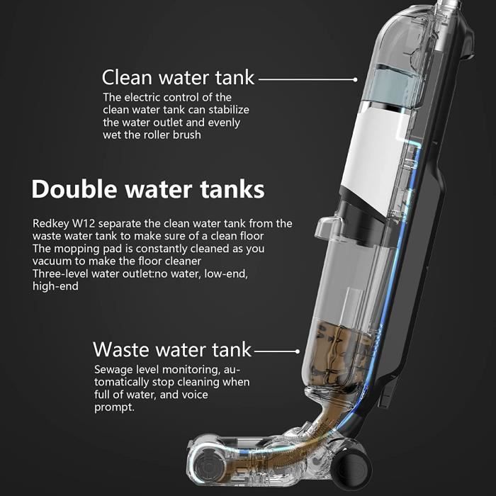L’aspirateur Redkey W12 est un modèle sans fil léger, combinant aspirateur, serpillière et autonettoyant. Il nettoie efficacement les déchets humides et secs avec un niveau sonore de 72dB. Équipé d’un écran intelligent et de 3 brosses, il facilite le nettoyage de votre maison.