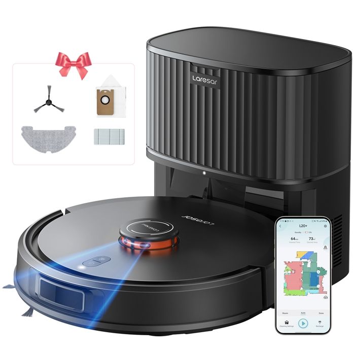 Aspirateur Robot Laveur 3 en 1-Laresar L20+-Station Auto-Vidage-Automnomie 200Min-Navigation LiDAR-Connecté APP/Alexa