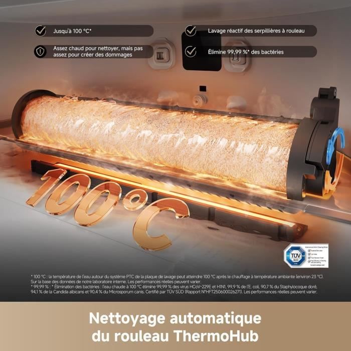 Lavage humide Fonction de programmation Système d’autovidage Routage Automatique Retour automatique à la station de base Fonctions de la base : chargement, purification Détecteur d’escalier Détection d’obstacle Franchissement d’obstacles : jusqu’à 8 cm Soins animaliers Wifi |