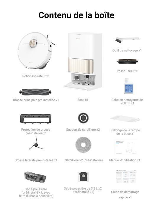 | Outils inclus | 1 x robot aspirateur et laveur |