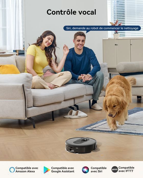 | Caractéristiques particulières | Navigation intelligente LiDAR à 360°; Nettoyage en zigzag et en matrice ; Stockage cloud pour les cartes multi-niveaux; Boost intelligent pour tapis; Évitement intelligent des obstacles; Zones interdites et murs invisibles; Contrôle vocal; Cartographie rapide; Recharge et reprise |