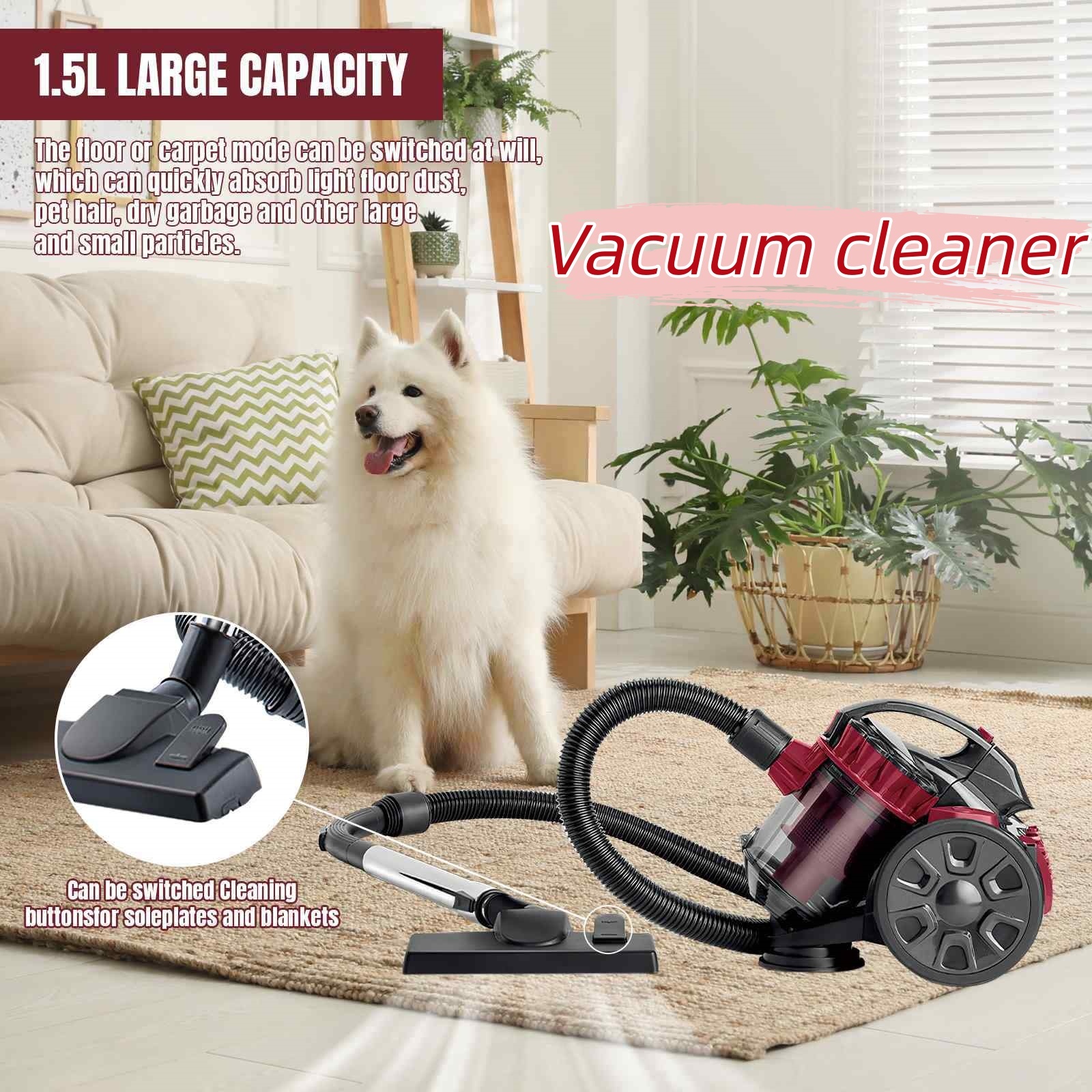 | Nom du produit | Aspirateur sans sac 2600 W – vertical- Câble de 5 m – 1,5 L – Haute performance et silencieux – Convient aux sols durs et moquettes |
