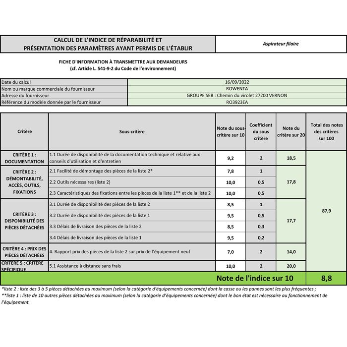 Produit réparable pendant 15 ans à un prix juste, qui s’inscrit dans le cadre de notre engagement en faveur de produits durables et responsables.