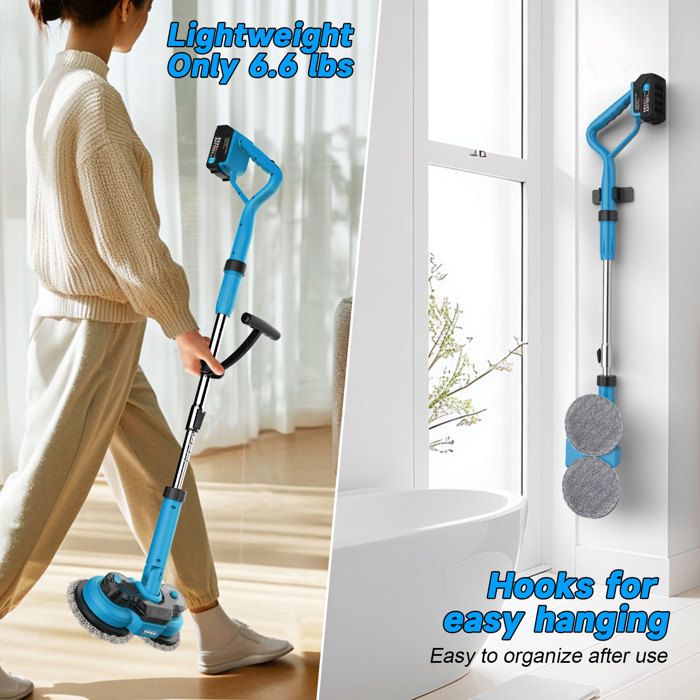 Ce balai électrique rotatif est doté d’un manche réglable en longueur et d’une poignée d’assistance en forme de T, de conception ergonomique, d’un réservoir d’eau amovible de 300 ml et d’un éclairage LED, qui peuvent être adaptés à différentes hauteurs et scénarios d’utilisation, réduisant ainsi efficacement la fatigue liée au nettoyage.
