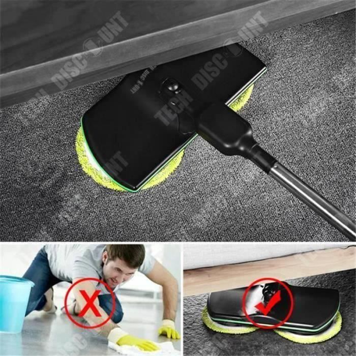Couleur : noireTaille 46 cm x 11 cm x 19 cmPrésentation du produit:Ceci est un balai électrique sans fil rechargeable. Cet objet astucieux permet d’efficacement et rapidement nettoyer et polir votre sol, rendant toutes vos pièces impeccables.Sans angles morts:Ce produit sans fil dispose d’une rotation sur 180 degrés et est réglable sur 95135CM afin de nettoyer sous les canapés, le fond du lit,