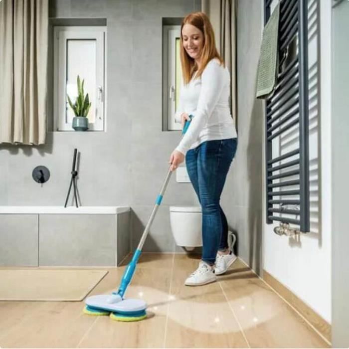 Gain de temps et d’effort – Nettoie facilement toutes les surfaces grâce à sa puissance de rotation.Nettoie, frotte et polit automatiquement à 100 rotations/minutes.Sans fil, rechargeable et extrêmement flexible grâce à la batterie d’alimentation.Nettoie vos sols jusqu’à 10 fois plus rapidement que les systèmes conventionnels.Convient parfaitement à toutes les surfaces et aux sols durs tels que le carrelage, le parquet, le linoléum, le stratifié et bien d’atures encore.Nettoie également les surfaces sensibles telles que les parois de douche, les baignoires et les fenêtres.Multifonctionnel : peut être utilisé verticalement et horizontalement.90 minutes d’autonomie de nettoyage – une seule charge de batterie suffit pour toute la maison.Conception mince – idéal pour les endroits difficiles d’accès.Extrêmement léger – peut être facilement utilisé d’une seule main.Comprend 6 tampons de nettoyage lavables (tampon à récurer pour les saletés tenaces, tampon en microfibre pour les sols normalement sales et tampon de polissage pour polir vos sols).