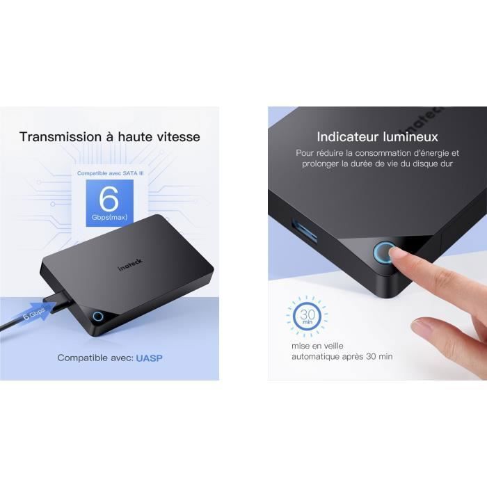 | Nom du produit | Boîtier de Disque Dur Externe – INATECK – SATA 2.5″ – USB 3.0 – 2 To – Support UASP |