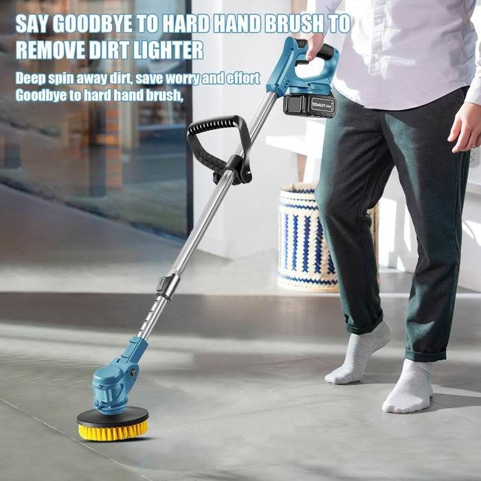 Brosse de Nettoyage Électrique 21V – Polyvalente – pour Salle de Bain, Carrelage, Sols, Voiture -Télescopique 90-125cm – 5000