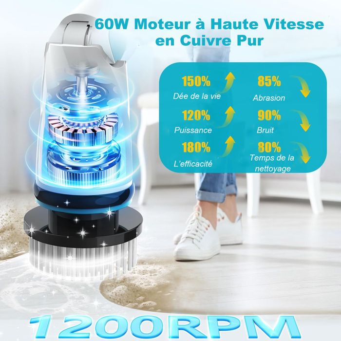 la nouvelle autolaveuse électrique de salle de bain adopte un moteur de 60 W avec un rotatif à double roulement qui peut atteindre une vitesse maximale de 1 200 tr/min, 66 % plus puissante que les autres autolaveuses de salle de bain, assurant un nettoyage en profondeur même sur les taches les plus tenaces. Le moteur de nettoyage de la salle de bain augmente également le couple à 45 kg.