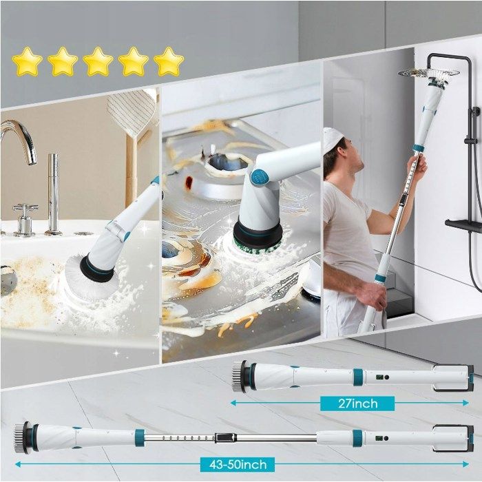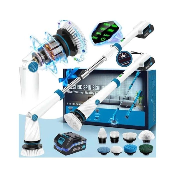 Nom du produit Brosse de nettoyage électrique recharge sans fil avec 8 têtes de brosse remplaçables 60W 2000mAh 3 vitesses Longueur réglable