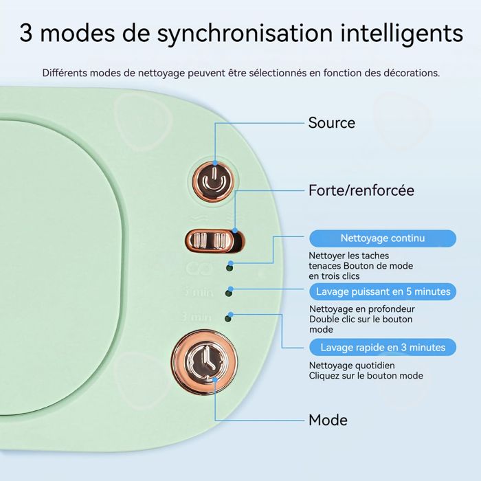 1. Autonomie élevée : La batterie de 2500mAh du nettoyeur peut fournir une durée d’utilisation prolongée pour le nettoyeur à ultrasons.2. Plusieurs minuteries : Le nettoyeur à ultrasons propose 3 niveaux de minuterie, permettant de choisir différents temps de nettoyage selon les besoins de propreté des objets et le degré de salissure.3. Réglage multiple : Ce produit dispose de 2 niveaux de réglage, permettant d’ajuster la puissance des ultrasons en fonction des différents matériaux et du degré de salissure des objets à nettoyer.4. Nettoyage à 360 degrés : La conception du nettoyeur permet au liquide de nettoyage d’entrer en contact avec les objets sous tous les angles, garantissant un nettoyage efficace de toutes les surfaces.Fréquence de vibration : 45 kHzType d’alimentation : USBDimensions du produit : 22,5 x 10,5 x 7,5 cmDimensions du compartiment intérieur : 15 x 7 x 4 cmMinuterie : 3 niveaux de temporisationNiveaux : 2 niveaux de réglageFréquence de vibration : 45 kHzCapacité de la batterie : 2500 mAH