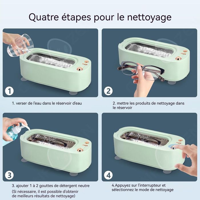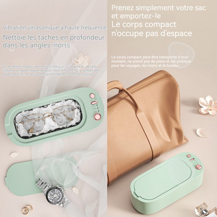 C Nettoyeur à ultrasons 45kHz 2500mAH 3 niveaux de minuterie et 2 niveaux réglage 360 degrés nettoyage nettoyeur ultrasons lunettes