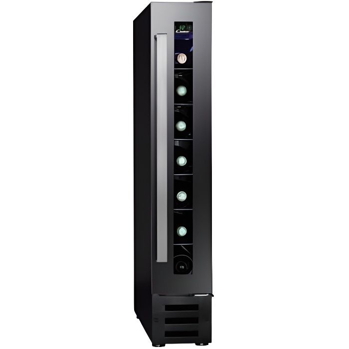 Référence commerciale CCVB 15 Installation Built in Number of standard wine bottles 7 Classe énergétique G Nombre de zones de température 1 Matériau des étagères Clayettes fil chromées Type de contrôle Digital Hauteur du produit (mm) 863 Largeur du produit (mm) 150 Profondeur du produit (mm) 525 Connectivité Contents only……