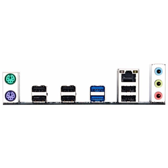 1 x clavier PS/2 6 x USB 2.0 2 x USB 3.0 1 x LAN (Gigabit Ethernet) 1 x sortie de ligne audio – mini-jack 1 x entrée de ligne audio – mini-jack 1 x microphone – mini-jack 1 x souris PS/2 |