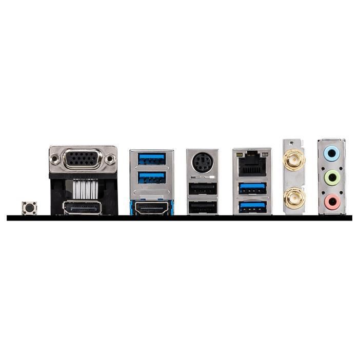 1 x LAN (Gigabit Ethernet) 1 x entrée de ligne audio – mini-jack 1 x sortie de ligne audio – mini-jack 1 x microphone – mini-jack 4 x USB 3.2 Gen 1 1 x clavier / souris PS/2 2 x USB 2.0 1 x HDMI 1 x DisplayPort 1 x VGA |