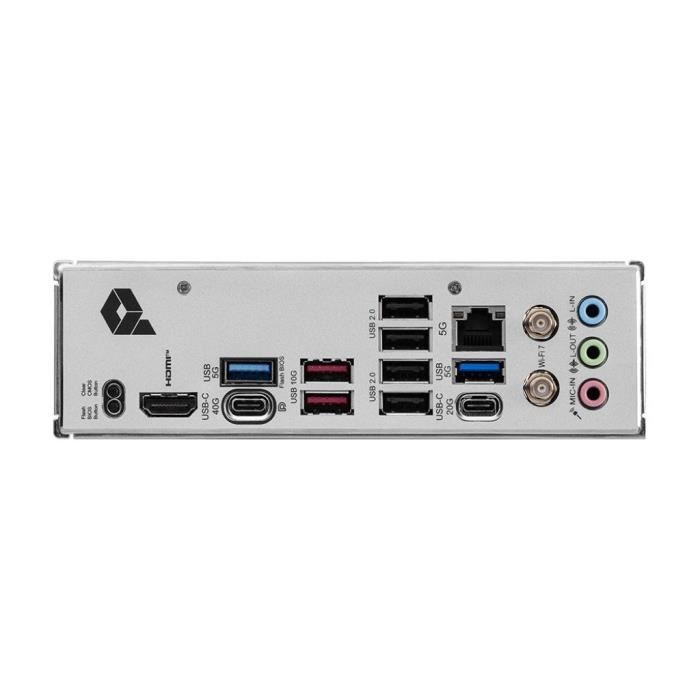 | Interfaces | Ports USB 2.0 : 4, Ports de type A USB 3.2 Gen 1 (3.1 Gen 1) : 2, Ports de type C USB 3.2 Gen 1 (3.1 Gen 1) : 1, Ports de type A USB 3.2 Gen 2 (3.1 Gen 2) : 2, Ports de type C USB 3.2 Gen 2 (3.1 Gen 2) : 1, Port ethernet LAN (RJ-45), Port HDMI, DisplayPorts, Jack microphone, Port de sortie S/PDIF, Wifi (802.11be), 5 Gigabit Ethernet, Bluetooth 5.4 |